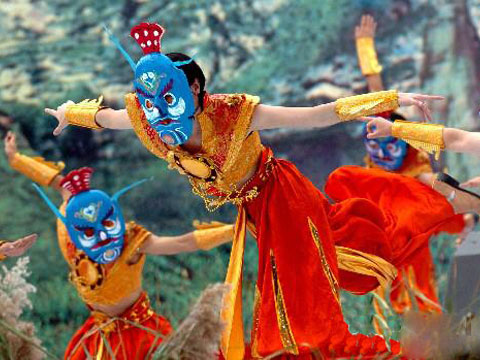 陕西西安户县钟馗故里傩舞跳钟馗傩【nuó】舞,又叫"大傩"、"跳傩",俗称"鬼戏"或"跳鬼脸"。它渊源于上古氏族社会中的图腾信仰,为原始文化信仰的基因,广泛流传于各地的一种具有驱鬼逐疫、祭祀功能的民间舞蹈,是傩仪式中的舞蹈部分,一般在大年初一到正月十六期间表演。原是古代祭祀性的原始舞蹈,舞者配戴形象狰狞的面具,装扮成传说中的"方相氏",一手持戈、一手持盾,边舞边"傩、傩……"地呼喊,奔向各个角落,跳跃舞打,搜寻不祥之物,以驱除疫鬼,祈求一年平安。现存傩舞主要分布在江西、安徽、贵州、广西、山东、河南、陕西、湖北、福建、云南、广东等地,各地分别有"跳傩"、"鬼舞"、"玩喜"等地方性称谓。