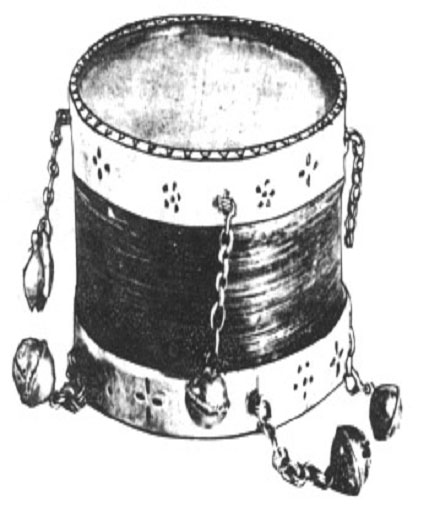 在北京中国艺术研究院音乐研究所的中国乐器博物馆里,陈列着一个来自云南民间的烟盒,做工细致,小巧玲珑,盒边镶铜箍、饰铜铃。已被载入《中国乐器图鉴》中。