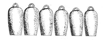 1978年,在云南省牟定县福土龙村出土了一套战国时期的铜钮编钟。其形制与中原、西南出土的编钟完全两样,因钟顶有半环形铜钮而得名。这套铜钮编钟,共六枚。用青铜铸造而成,外表较粗糙。钟体呈椭圆形,圆肩,上大下小,钟顶铸有半环形的钟钮。钟体外表饰有蟠蛇形、蜿蜒形纹饰,颇富战国时期彝族先民的文化特色。钟口平直,横截面呈橄榄形( 图)。最大的一枚铜钮编钟,钟高53厘米,上部最大直径24厘米,钟口直径18.5厘米。六枚编钟依次递减。最小的一枚,钟高43厘米,上部最大直径20厘米,钟口直径14.5厘米。每钟只发一音,音色清脆、嘹亮。这套铜钮编钟是迄今出土的这类编钟中最大最完整的一套。现藏于云南省博物馆。