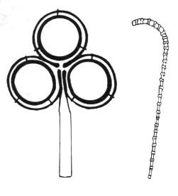 三星锣由三面小锣组成,呈品字形吊挂于锣架上。小锣响铜制,呈盘形,锣面平坦无脐,与云锣形制相同。各锣大小稍有区别,锣面直径分别为:上锣9厘米,下右锣9. 5厘米,下左锣10厘米。锣边钻有三个小孔,用绳系于锣架上。锣架用竹片或铁条弯 成圆形,下接竹或木柄,柄长35厘米,锣棰用细竹根烤弯制成。福建莆田的三音锣,锣架木制。