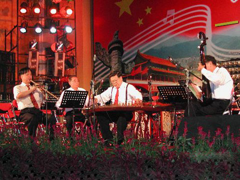 广东汉乐分布在广东梅州、汕头、韶关、惠阳等地区,又以梅州市大埔县为代表,旧称客家音乐、外江弦、儒家乐、汉调音乐等。据查是古代汉民由中原南迁时带入的,有"中州古乐"之称,在大埔流传至少有五百年以上的历史。广东汉乐保留了原有中原音乐的特点,并与大埔当地的民间音乐(如打八音、中军班音乐)等相融合,同时又吸纳了潮乐(如大锣鼓)的一些成分,已成为广东三大乐种之一。