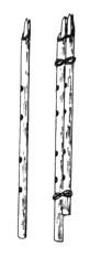 管身竹制,多选用无节水竹管或筷子粗细的笔管竹制作,民间不拘规格,多随意而制,故长 短尺寸不定。一般管长20厘米~26厘米、尾端内径0.8厘米,竹管粗端作为管首,将 上端 管口从1.5厘米处斜削成坡状,并在坡口靠下的管壁上劈开一条缝隙,缝隙长0.5厘米~0 .8厘 米,在缝隙中夹以一片小竹叶作为簧片。管身开有四个圆形按音孔(图),它们距管首分 别为7.5厘米、11.5厘米、15.1厘米和17.5厘米。