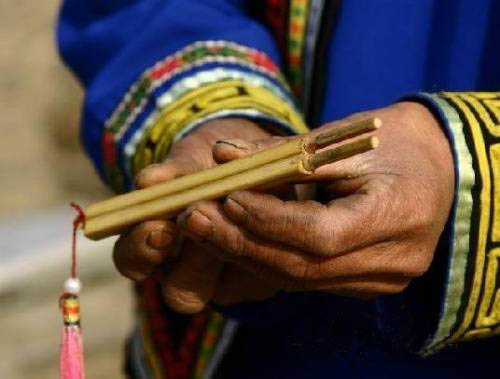 演奏时,两手各执一箫,箫管斜置,两管呈八字形(图)。用无名指、中指、食指分 别按一、二、三孔,第三孔设在后面的,需用拇指按背孔。口含两箫吹嘴,气流进入气道, 冲激分气阀,引起管内气柱振动发音,通过平吹和超吹,音域f—a2,低音深厚,中音明 亮,f2以上发音尖锐。是深受布依族喜爱的民间吹奏乐器,多在农闲或工余时间吹奏娱乐 。常用于独奏或为民歌伴奏。独奏可充分表现布依族民间多声部音乐的特色。在为民间重唱 歌曲“大歌”伴奏时,常跟腔演奏双声部,曲调徐缓悠长,节奏自由;在伴奏重唱“小歌” 时,多右手演奏旋律,左手点缀和音,使布依情歌更具有浓郁的地方风采。
