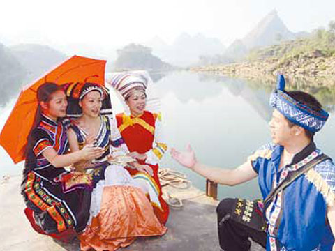 马山民歌历史源远流长,远古时在这块土地繁衍的马山各族人民,都以山歌来表达自己的喜怒哀乐。马山民歌曲调优美、丰富多彩。全县可分为东部民歌和西部民歌。东部山歌旋律奔放、粗犷,歌调有蛮欢、三顿欢、卜列欢、呼吁欢、了麻竹、大环欢、加方欢、杨圩欢、白山欢等;西部山歌旋律平衡流畅,高亢奋进,主要歌调有雪欢、嘹欢、高调欢、排欢、思国罗欢等。