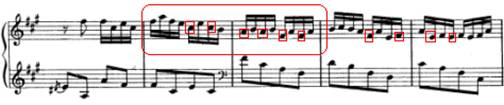谱例14:1(大方格内为音符的起伏跑动,小方格内为同音反复)