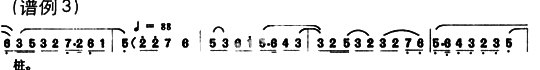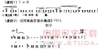 以上这些谱例均是坠子艺术最具特色的表演手法。说书人的音调一方面是故事情节的牵线者、引领者、描述者,