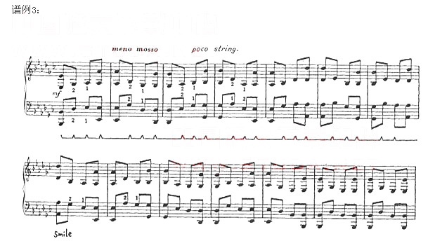 因此,演奏中国钢琴作品,必须具有“全方位”的思维方式,在和声织体进行中注重旋律线条的美;在旋律的流动中注重多声结合的变化。努力做到“多线条思维”和“全方位思维”相结合。这样才能准确而完美地表现出浓郁的中国民族特色和风格。