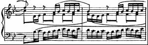 最简单的形式是由和弦支持的旋律或经过句。可分出三个不同的层次:主旋律、低音进行以及插入其中的和弦组成。通常在这三个层次之外还可以加上第四个与旋律部分有关的层次。如肖邦《华丽圆舞曲》中的一个片段:(如图2)