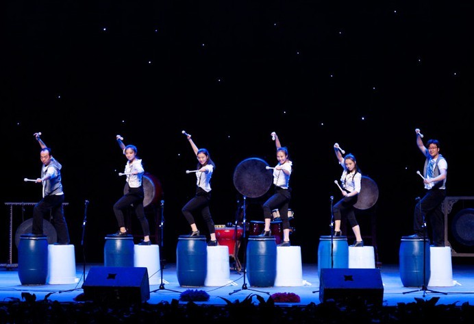 晚上7:30,音乐会在印尼乐器佳美兰合奏的《班内与八邦变奏曲》中拉开了帷幕,神秘而清越的琴声瞬间将观众带到了遥远而又美丽的东南亚大地。佳美兰音乐具有悠久的历史,代表着印尼的传统音乐文化,具有浓郁的地域特色。而演奏使用的这套佳美兰乐器,还是周恩来总理当年出访印尼时带回来的国礼。当具有日本风情的《樱花与伞》演奏时,整个剧场静若无人,观众无不被优美的旋律所吸引。接着,无论是由马林巴演奏的《野蜂飞舞》和《马刀舞曲》,还是非洲原生态音乐《拇指琴与小天使》都获得了全场热烈的掌声,期间,演奏家们还走下舞台与观众亲密互动,场面异常欢乐和谐。男女声二重唱《金刚山》最后一个音符落下时,全场沉寂,观众们仿佛还继续沉醉在美妙的乐音之中,继而响起雷鸣般的掌声。当运用竹制乐器展现东南亚风情的《仔鸭歌》结束后,演奏家一一为现场观众介绍了每件特色乐器的演奏方法,并用美国乐曲《哆、唻、咪》再次诠释其精髓。著名歌手西尔艾力演唱《爱人》、《掀起你的盖头来》两首歌时现场欢呼、呐喊回应不断,热闹非凡,在观众“再来一个”的呼喊声中,西尔艾力又加唱了《花儿为什么这样红》和西班牙名曲《这是什么》两首歌曲。而《幽默打击乐》匠心独运,以身体和拖把、啤酒桶等为乐器,通过演奏家们精湛的技艺和与观众间诙谐幽默的互动,赢得了全场的叫好声和欢笑声。俄罗斯音乐组合、拉美风情演奏以及新民乐女子弹唱都令观众耳目一新、拍手称赞。
