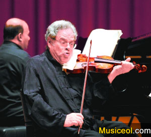 当我听到圣-桑第1号小提琴奏鸣曲在无比辉煌的尾声中结束,与全场观众一起在乐曲响起的瞬间起立欢呼,这样的场面让人感动不已。音乐会一开始的莫扎特奏鸣曲K454,帕尔曼的发挥谈不上出色,他的音色与演奏莫扎特的要求相去甚远。这不禁让我想起他在纪录片《小提琴的艺术》中说过的一句话,“当你无法把心中所想在琴上表现出来的时候,你就应该放弃拉琴了。”难道66岁的帕尔曼,他的职业生涯也走到了末端?但从第二首曲目开始,大师渐入佳境。贝多芬的“英雄”奏鸣曲及圣-桑第一奏鸣曲都充满着磅礴的气势与细腻的变化,以实力征服了全场。