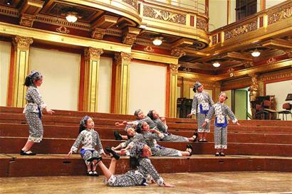 孩子们生动而富于水乡韵味的表演打动了在维也纳金色大厅中观看表演的千余嘉宾。(图片由市妇女儿童活动中心少儿广播合唱团提供)