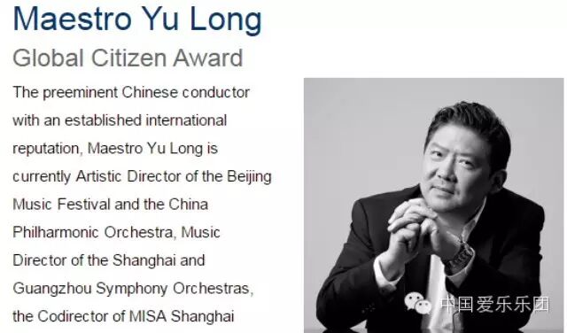 中国指挥家余隆是以中国爱乐乐团以及北京国际音乐节艺术总监的身份获得的该奖项,因为其在古典音乐领域为东西方文化交流做出了巨大贡献。余隆分别在1998年与2000年参与创办了北京国际音乐节与中国爱乐乐团,前者如今已成为享有国际声誉的古典音乐盛事,而后者则已经跻身世界知名交响乐团行列,早在2009年就被英国《留声机》杂志评选为世界十大最具影响力交响乐团之一。