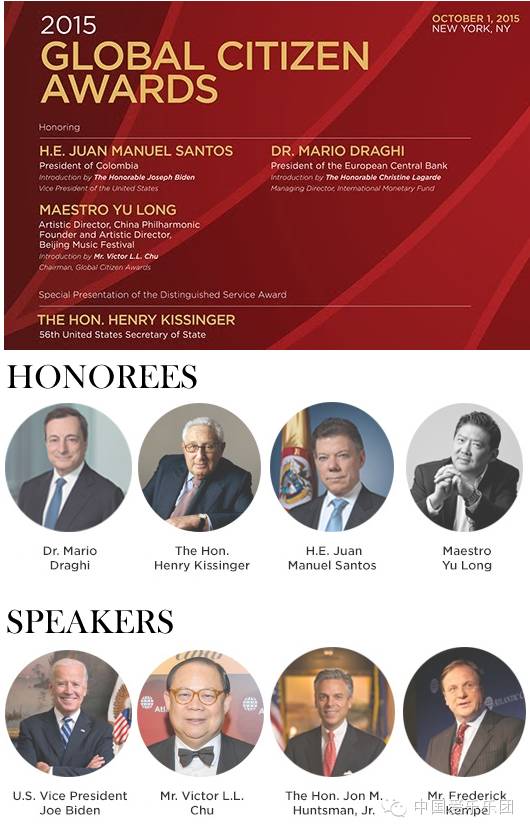 2013年,指挥大师小泽征尔先生曾获得“全球公民”奖