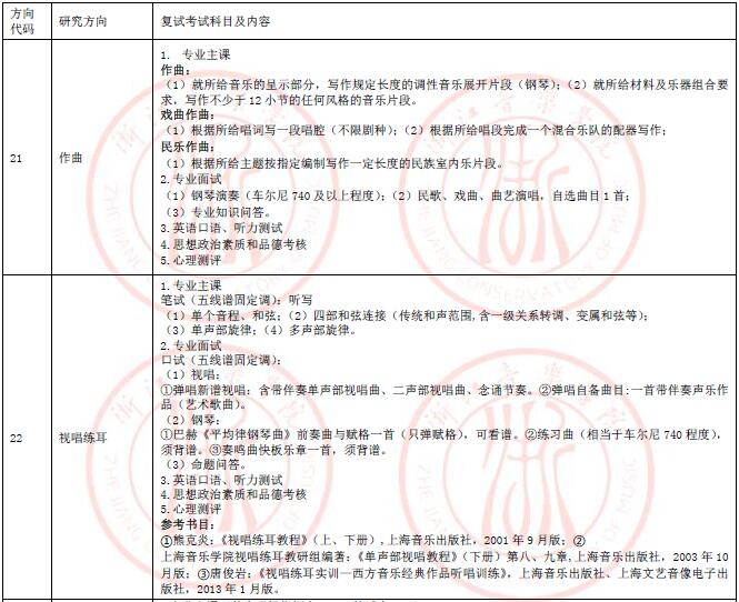 浙江音乐学院2021年硕士研究生招生复试主要考试内容