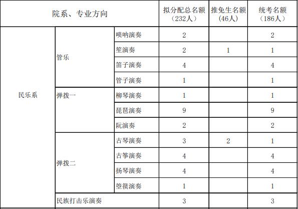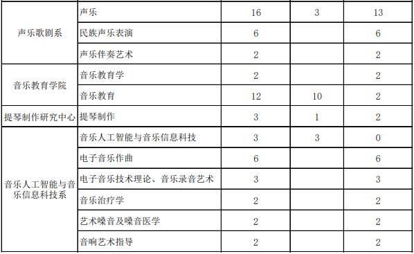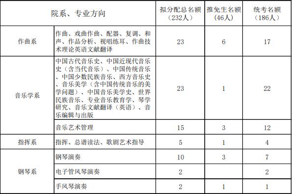 中央音乐学院2021年统考全日制硕士研究生招生拟录取名额分配方案