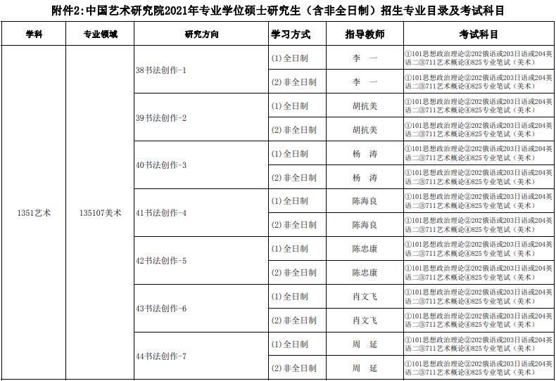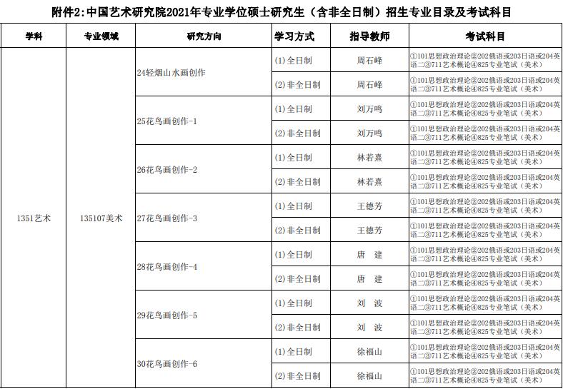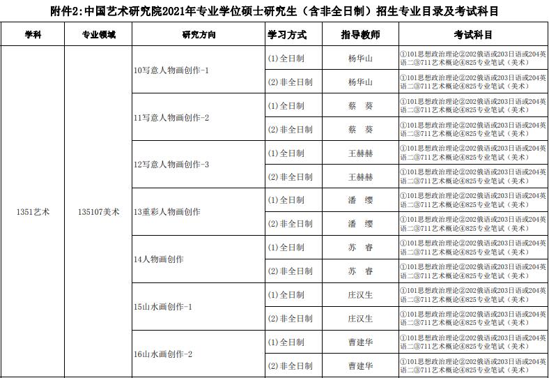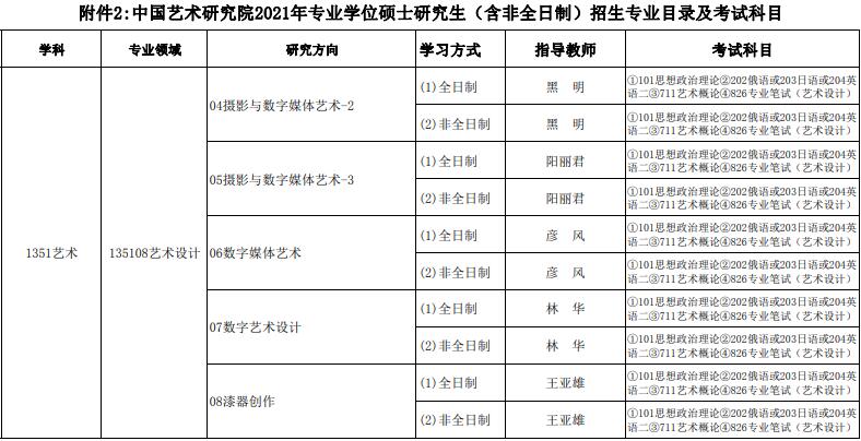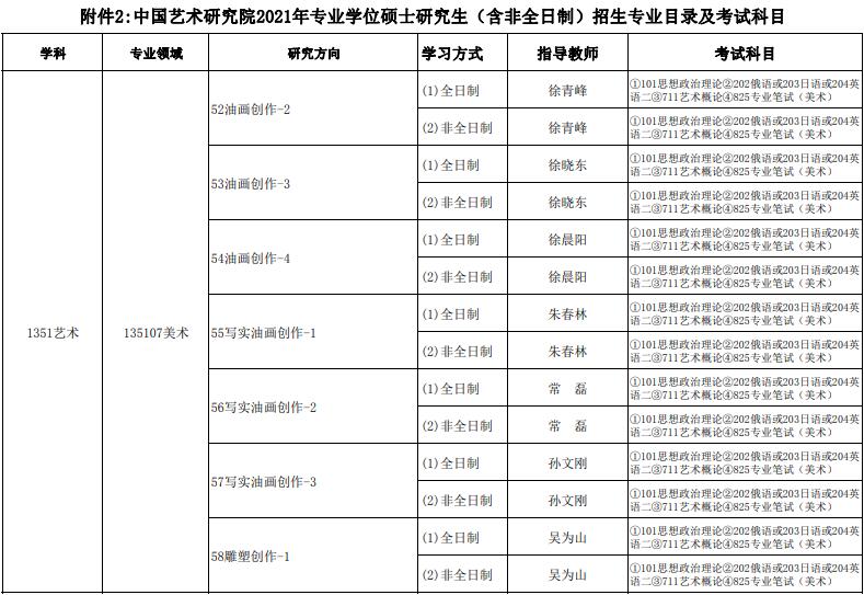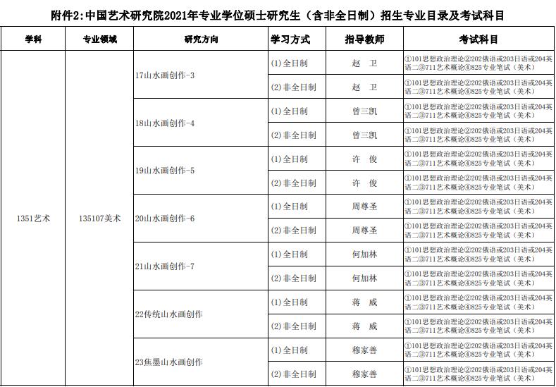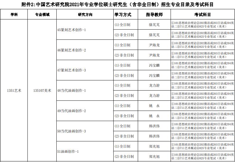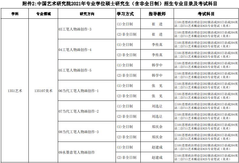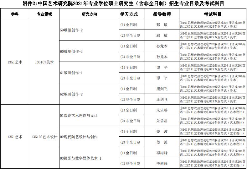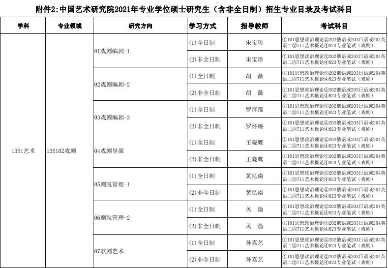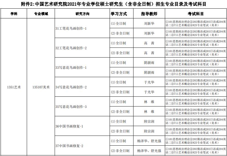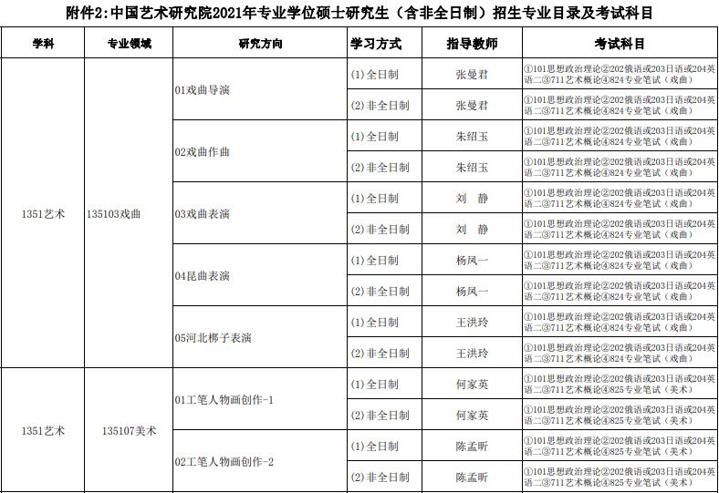 > 中国艺术研究院2021年专业学位硕士研究生招生专业目录