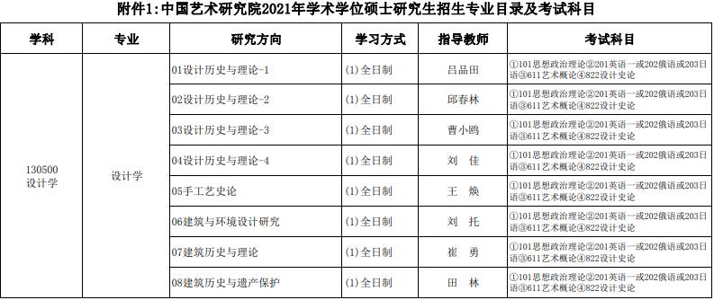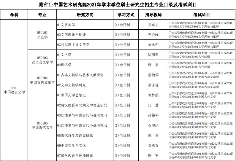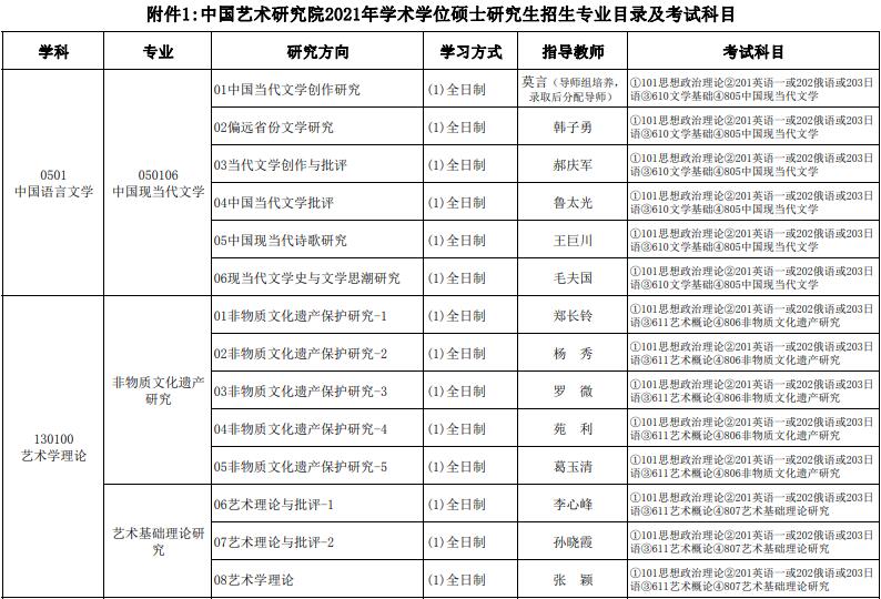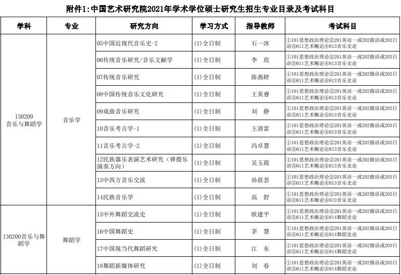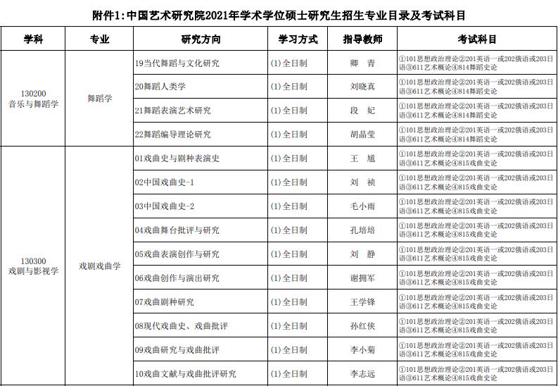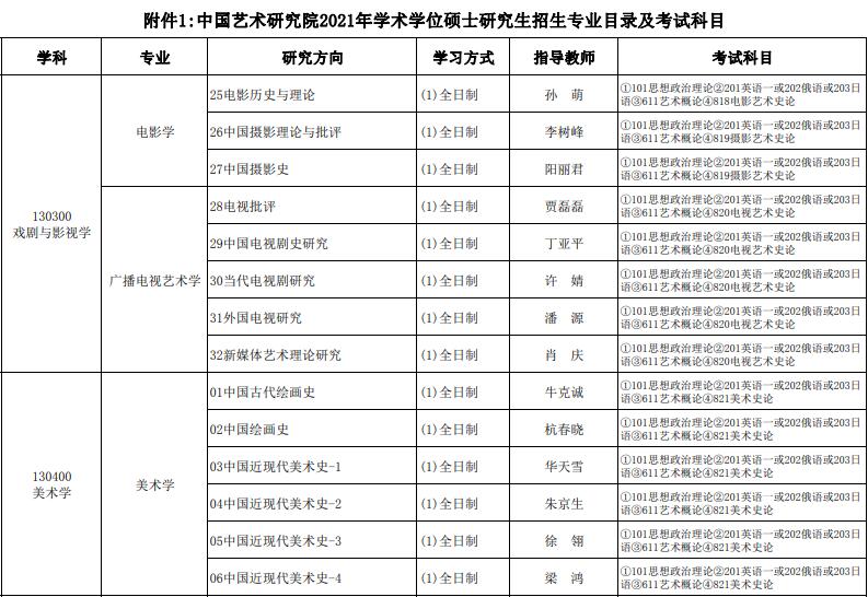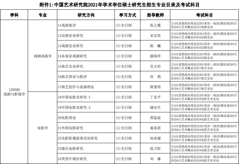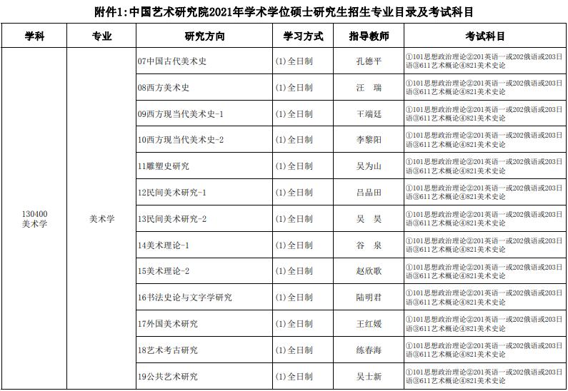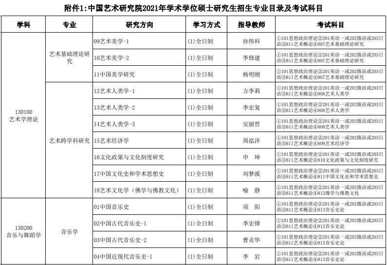 > 中国艺术研究院2021年学术学位硕士研究生招生专业目录